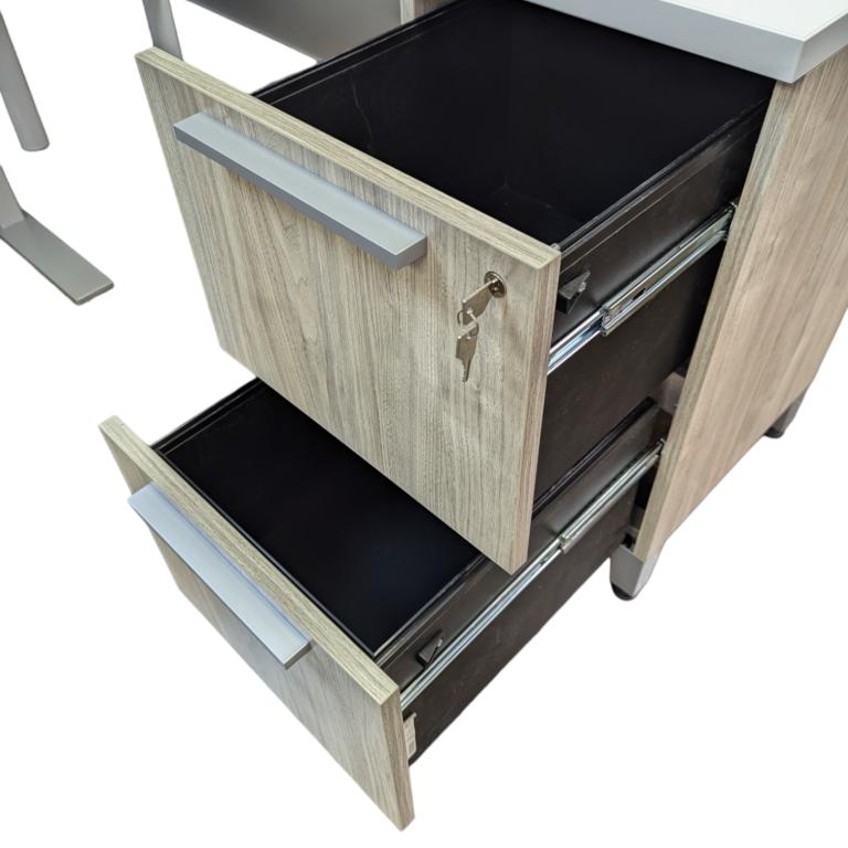 Description Product: Allsteel White Top/Silver Base Sit to Stand w/ RH F/F Return SKU: 819080 * Comes with Lock & Key