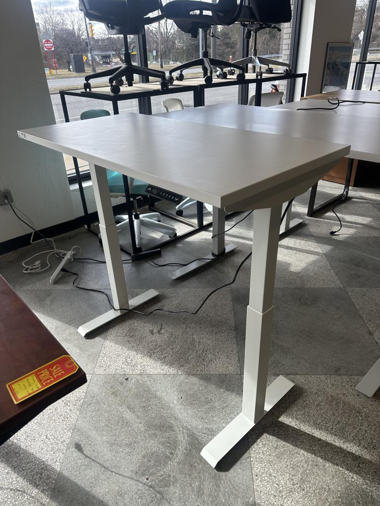 Description Electric Height Adjustable Table in White Laminate Finish 4' x 2' 45 1/2 " H = at Highest H 28" H = Lowest H 10 Available