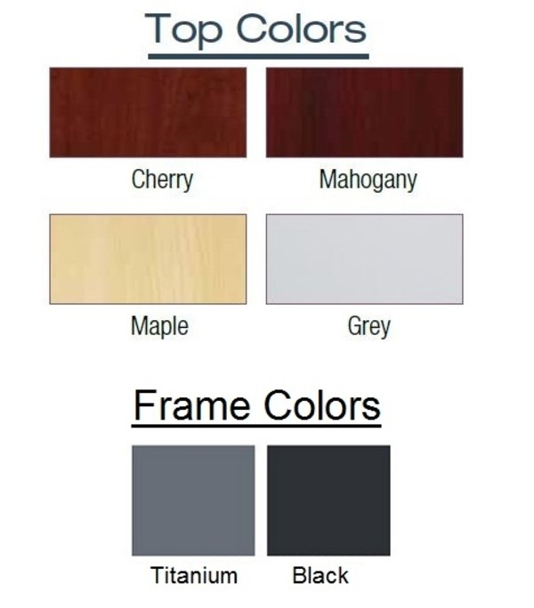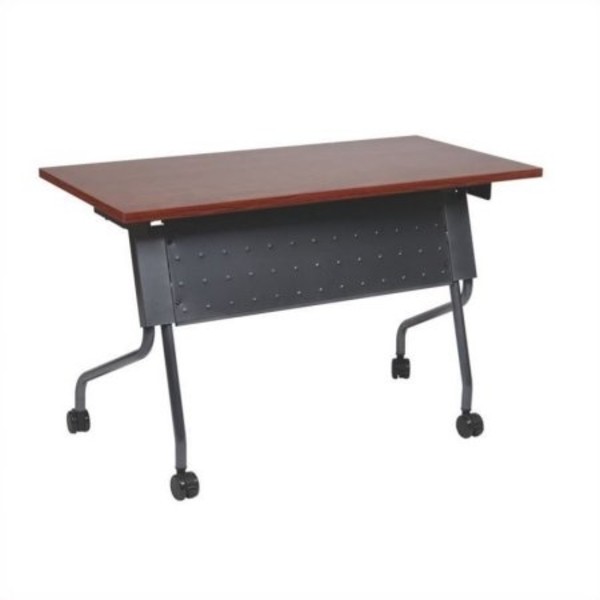 Description Budget friendly Office Star training tables feature a flip top that permits nesting for easy reconfiguration and storage when not in use. Top locks into position whether upright or horizontal. Frames are available in wither Titanium or Black, and have a modesty panel and 4 locking casters. Tops are 1" thick and feature a smooth, impact resistant 3mm PVC edge, and are available in Maple, Cherry, Mahogany, and Grey. Tables also feature a ganging mechanism, and trapezoid and half-moon shapes are also available for additional configuration options. Request a quote today!
