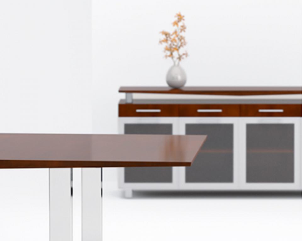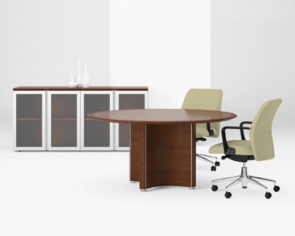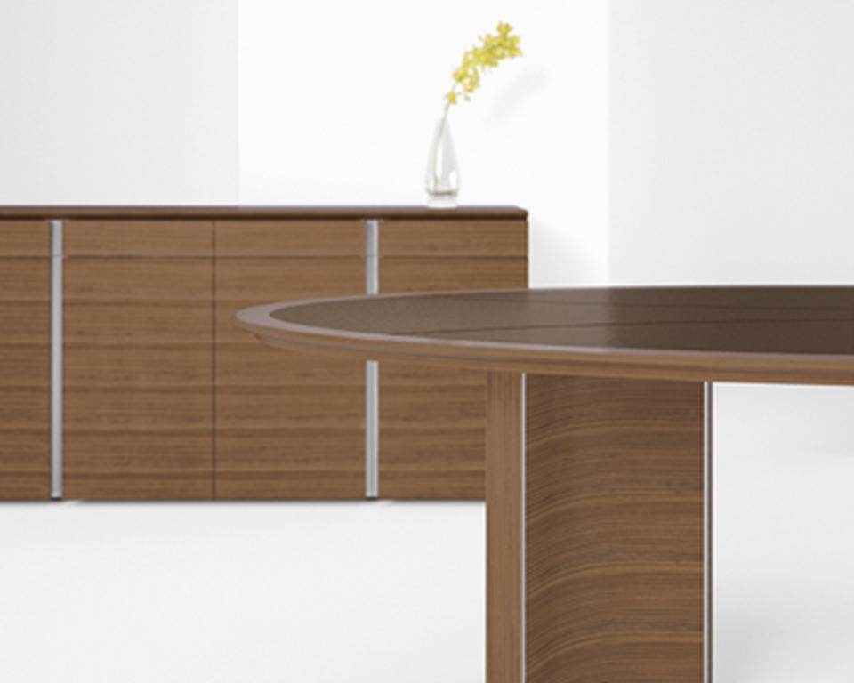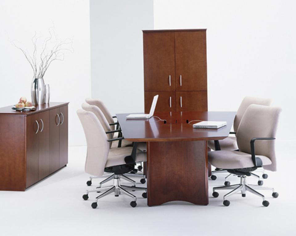 Description New Conference / Boardroom tables available in all sizes from 42" round to 24' and larger. Boat Shaped, racetrack, rectangular and round shapes in several colors light to dark. Pick from laminate or wood veneer. Add a matching credenza to complete the look.