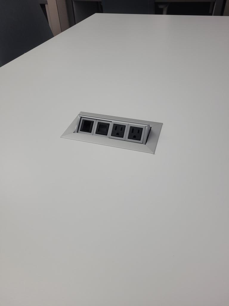 Description 8' White Conference table. Rectangle shaped. Perfect for smaller conference or meeting rooms. Also available, white boards, credenzas, chairs....