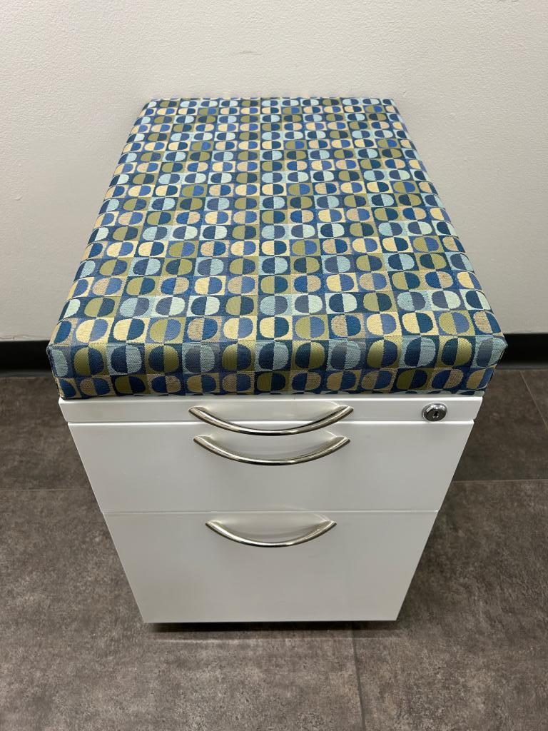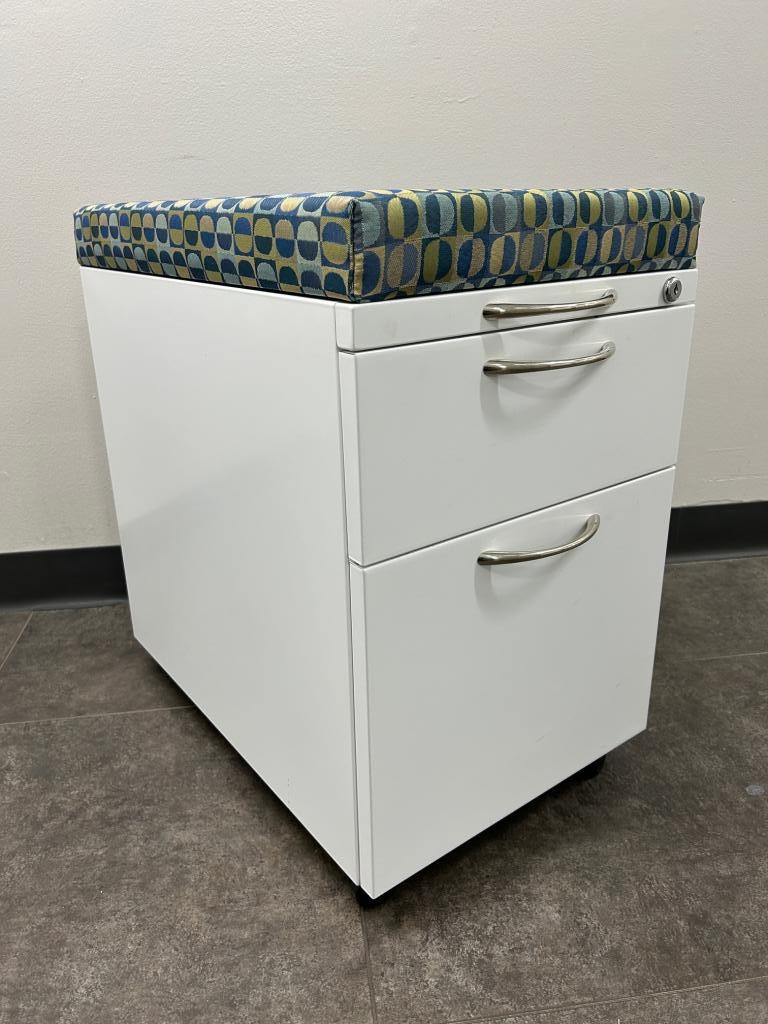 Description USED MOBILE FILE CABINETS BY AIS L Series Steel Storage 22"D X 23.75"H X 15"W BOX/FILE INCLUDES LOCK KEYS OPTIONAL $29 PER SET FINISH: WHITE CUSHION: PATTERN FABRIC NEW OVER $400!!!!