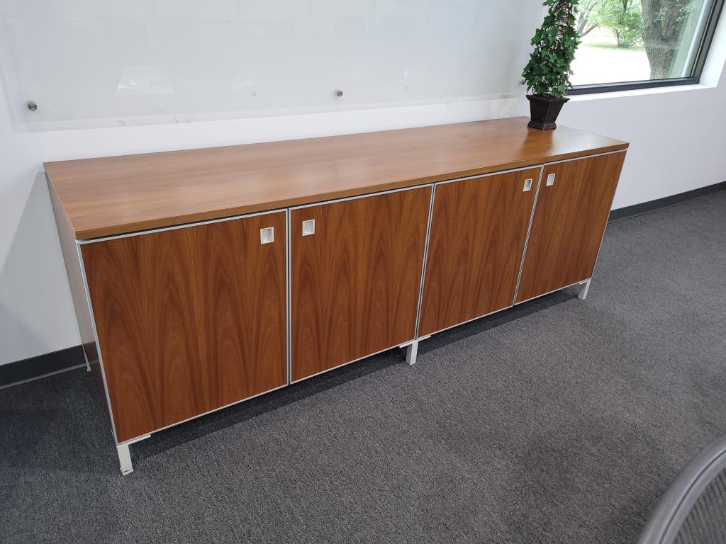 Description Beautiful 16'x54" racetrack shape cherry table with matching 8'x2'x34" storage credenza.