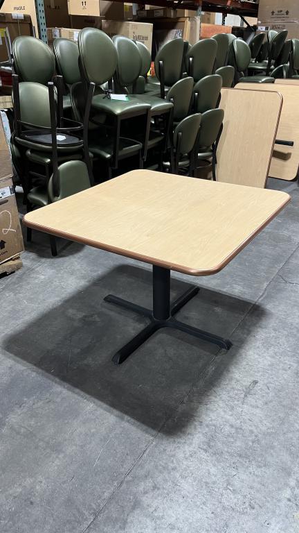 Description Now Available, Break Room Table with a Gold Edge finished in Maple Laminate. This table is 42" x 42" and 30" Tall, which would be a great size for break rooms. *WHS*