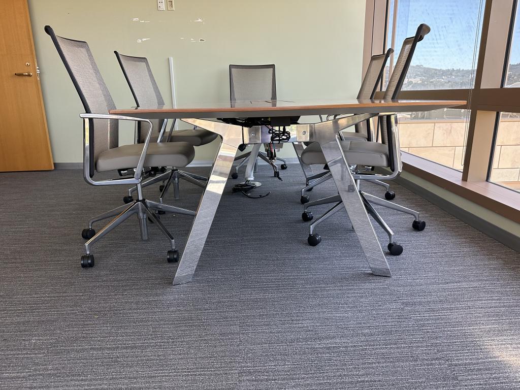 Description We have this Steelcase 8’x4’ powered table with chrome legs. It has an angular modern base with a built-in power inlay and data Managment.