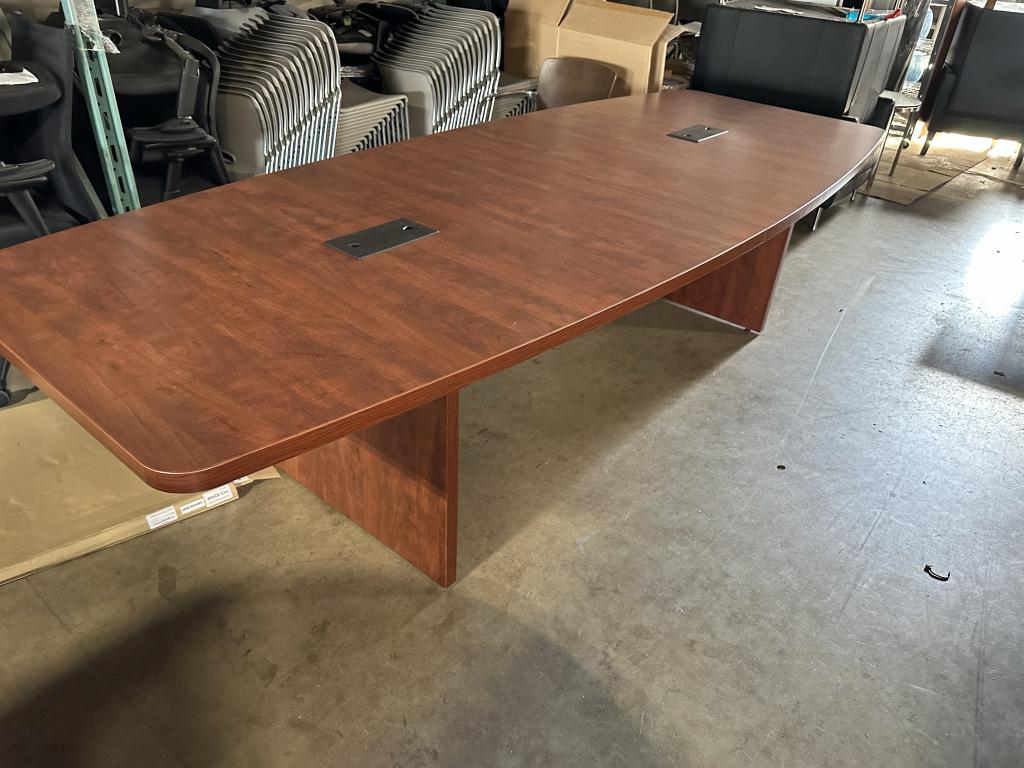 Description Pre-Owned 10' Cherry Laminate Boat Shaped Conference Table