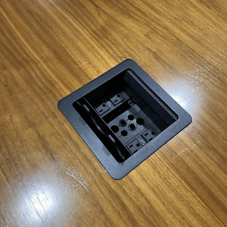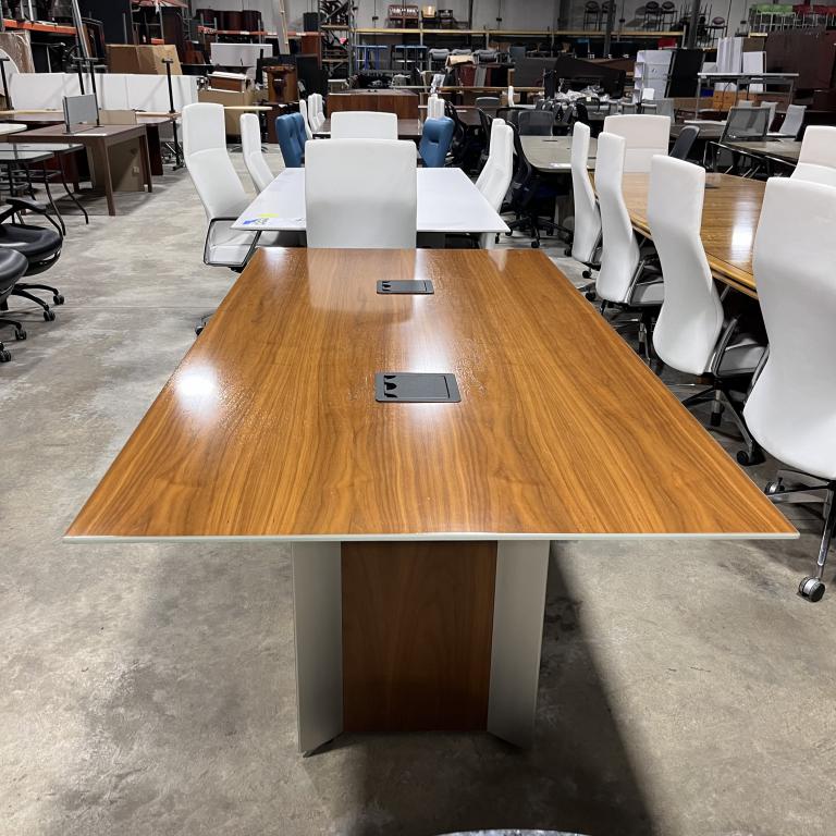 Description Pre-owned 7' conference table with a cherry veneer finish. It's in great condition, with power outlets right on the tabletop, and can comfortably seat 6 to 8 people. Perfect for your office space upgrade! *WHS*