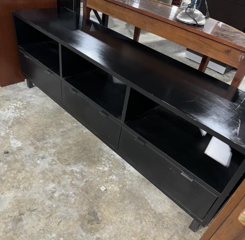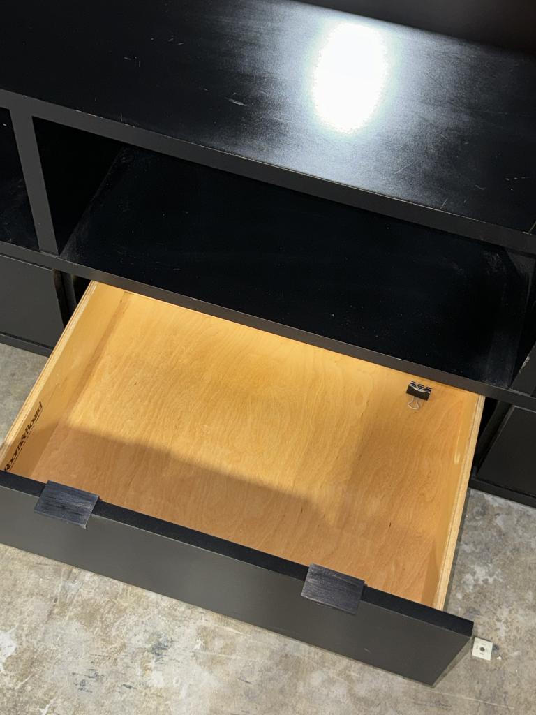 Description This Room & Board Copenhagen Open Top Media Console is perfect for storing your entertainment gadgets. With enclosed drawers and open shelving, it provides versatile storage space. The black finish and gunmetal hardware allow it to blend seamlessly into any space.*WHS_0524*