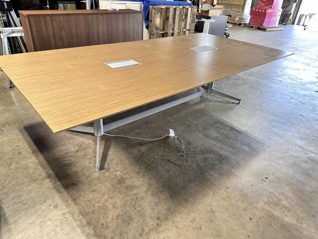 Description Pre-Owned 10' x 5' Rectangular Conference Table w/ Power w/ Silver Base