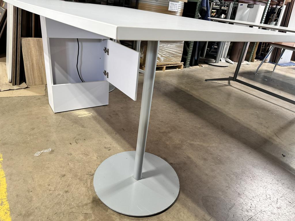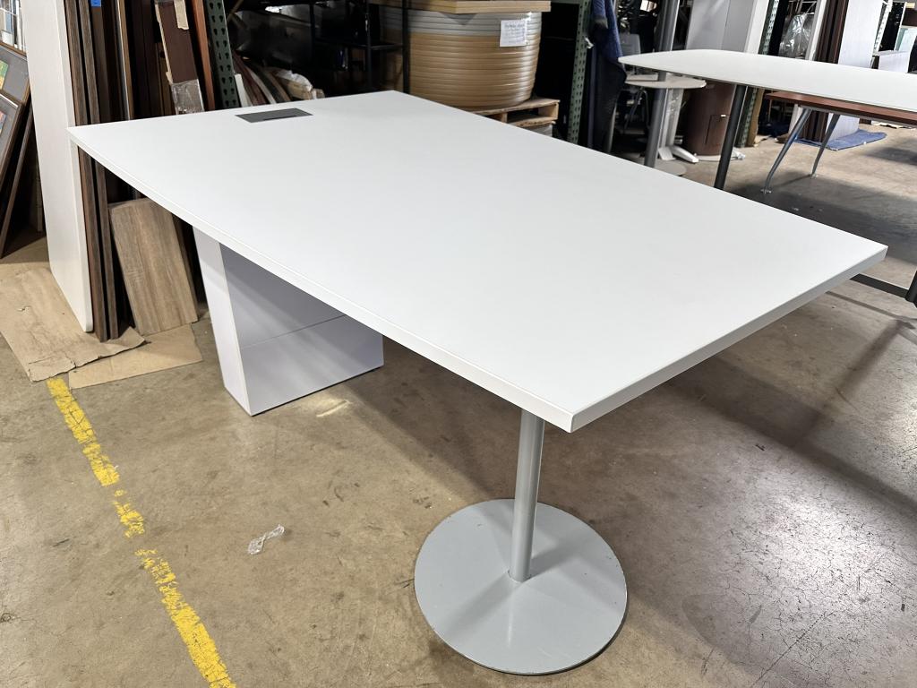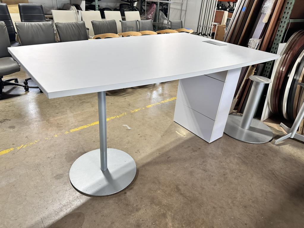 Description Pre-owned 78" Boat Shaped Huddle Table w/ Power, Silver Base