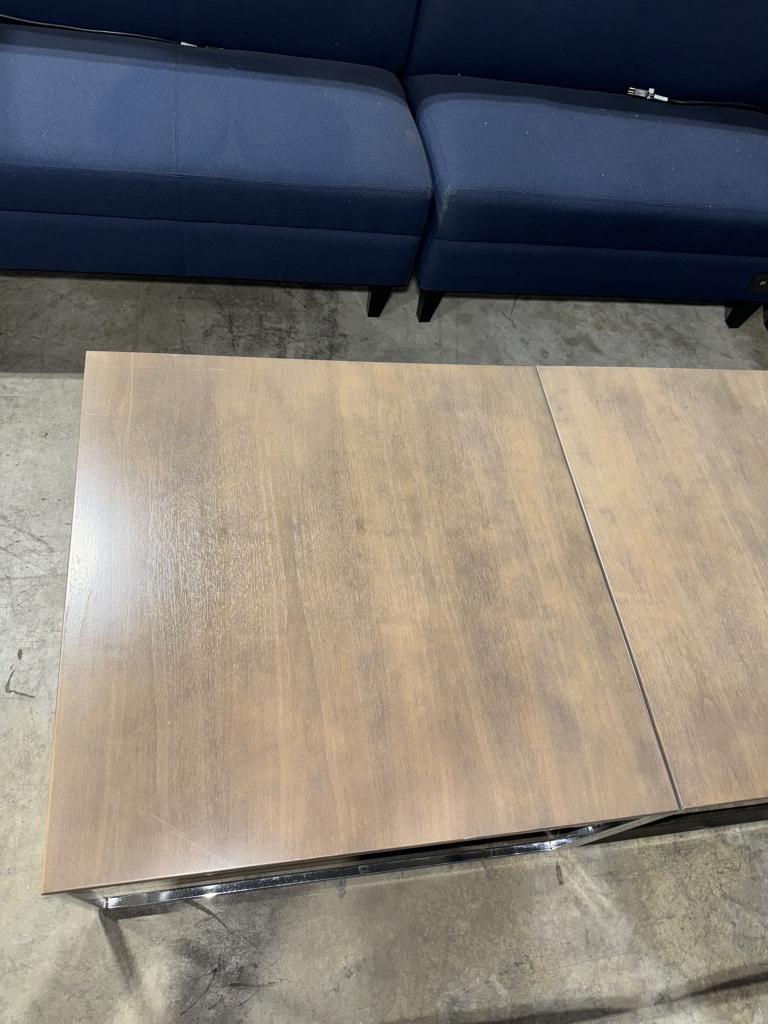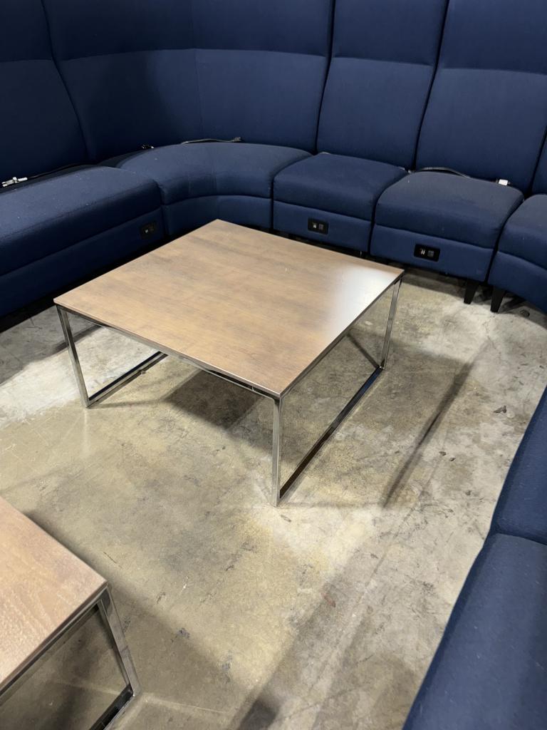 Description The Gunlocke 32'' square coffee table is a contemporary piece for your space. The ash finish on top of the light walnut veneer adds to its minimalist appeal, while the eye-catching chrome finished legs provide a subtle contrast. You can effortlessly blend two of these tables together.*WHS_0624*