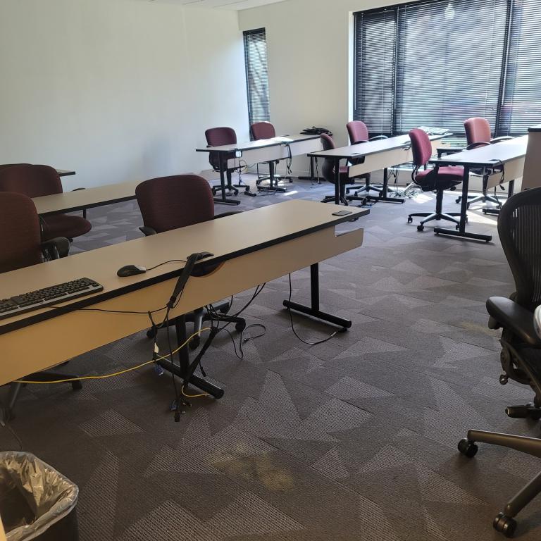 Description (21) 5' wide training tables (14) 3' with modesty panels (14) 8' with modesty panels (13) 4' wide training tables (6) 3' wide training tables (52) stationary chairs (43) red rolling chairs - Haworth Zody