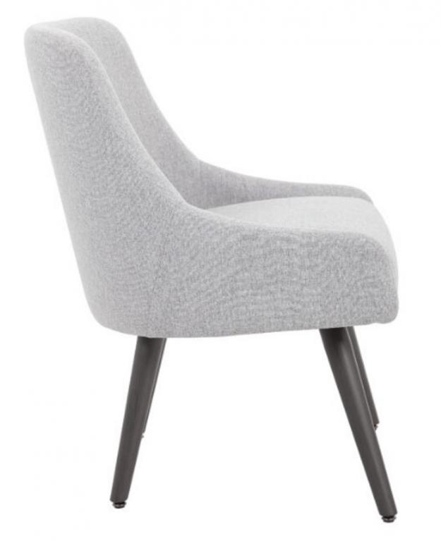 This Boyle guest chair has a unique curved back, and it has a foam padded seat. Both of which are upholstered in a soft touch poly-linen weave. It also comes equipped with 4 heritage gray wood tone metal legs.