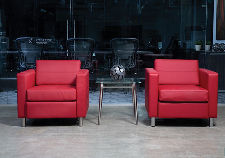 New Custom Fabric Pacific Arm Chair w/ Chrome Finish Legs.