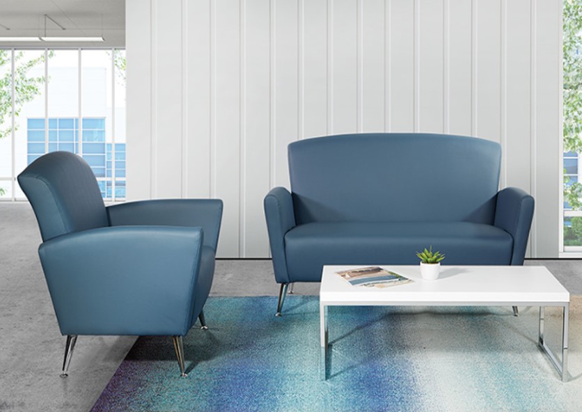 Loveseat in Dillon Blue or Black Fabric w/ Chrome Legs.