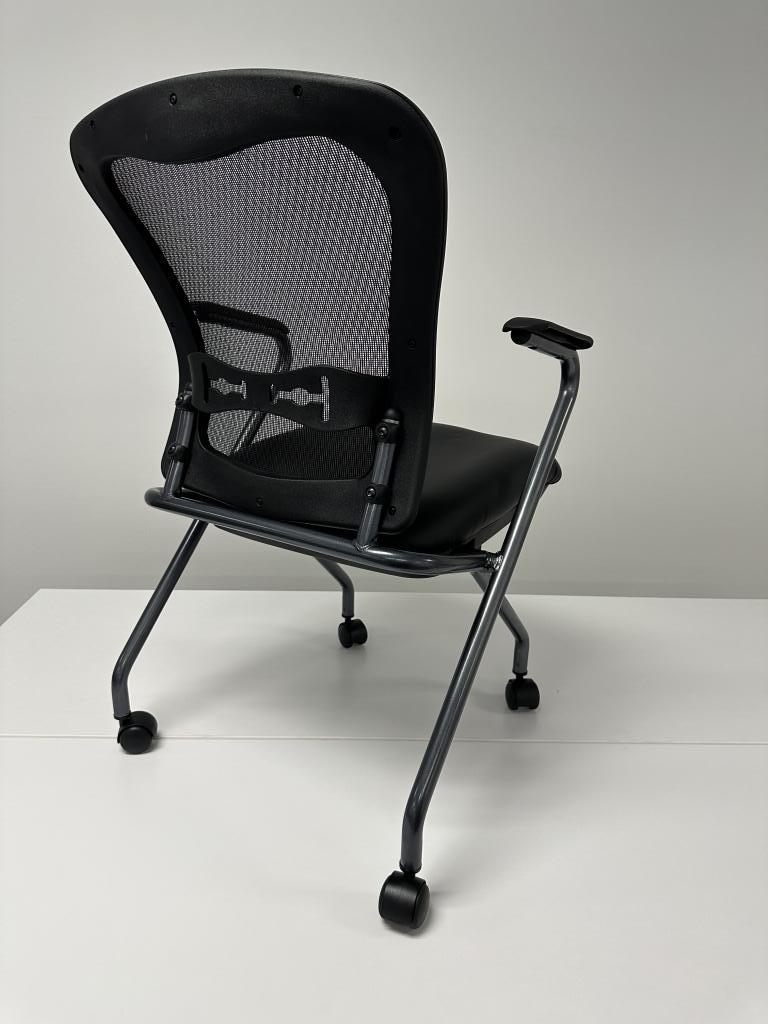 We have these OFS nesting chairs with mesh back and vinyl seat.