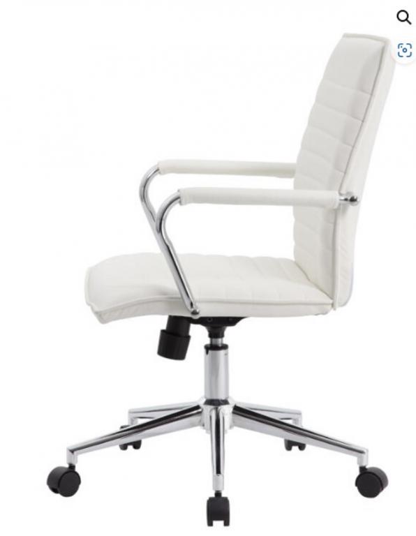 This task chair in white vinyl is designed with fixed chrome arms for that pop of metallic color that brings any room or office to the next level. The chair also features a gorgeous and strong chrome 25 inch base with 2 inch nylon dual wheel castors. In addition to looking fantastic, the chair also features a spring tilt mechanism, a pneumatic gas lift for easy height adjustability, tilt tension and an upright lock, while also boasting a weight capacity of 275 lbs.
