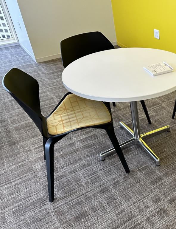 We have 2 gold and black Davis chairs from their Ginko Collection. These chairs are perfect for guest seating, lounge seating or breakrooms.