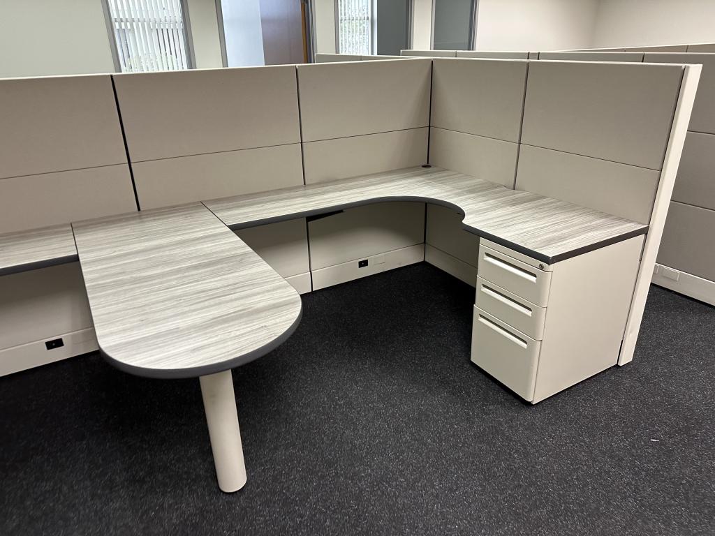 We have these Herman Miller Ethospace stations Inner tone that are 6’x5’x54” tall. Each station gets an individual 5’x5’ corner surface and they share a 5’x2’ collaboration table in between.
