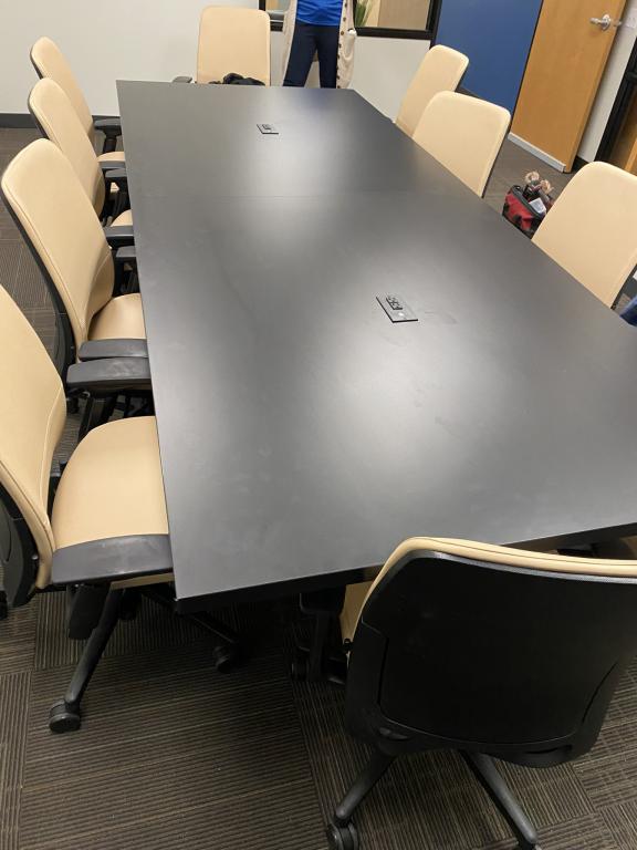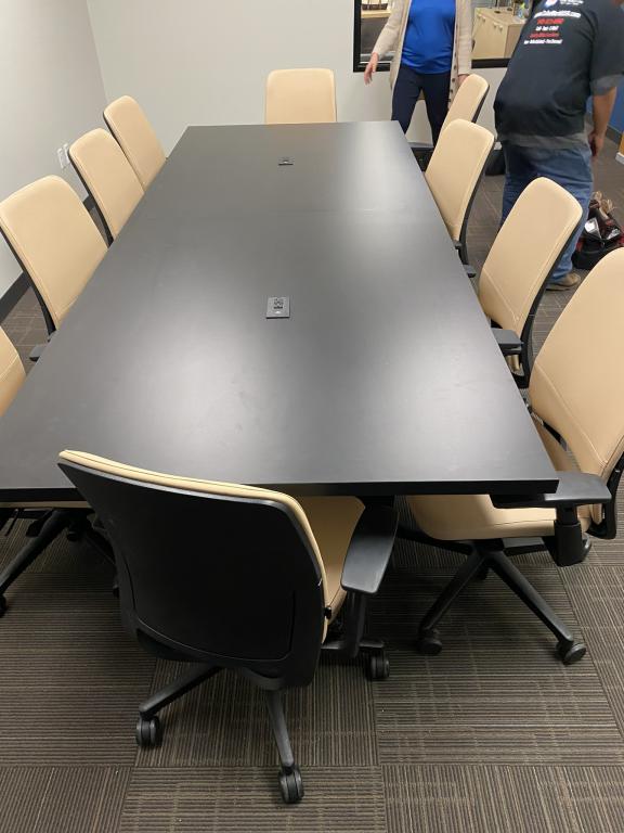 We have this Black Steelcase Payback Three Base conference Table refurbished like new with new black midnight Wilsonart laminate. Dual powered with USB and power.
