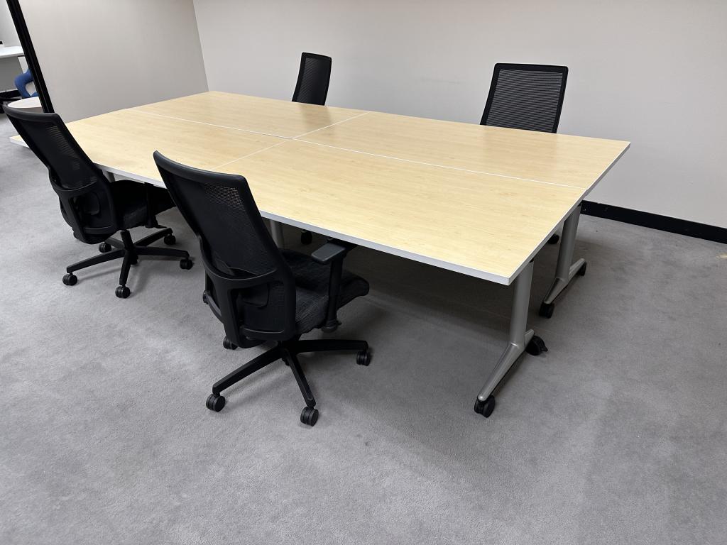 We have these Steelcase Coalesse mobile 5’x30” nesting tables that when combined come together to make a 10’x5’ table. These tables also fold for east store capabilities and we can change the tops of need to to a custom color.