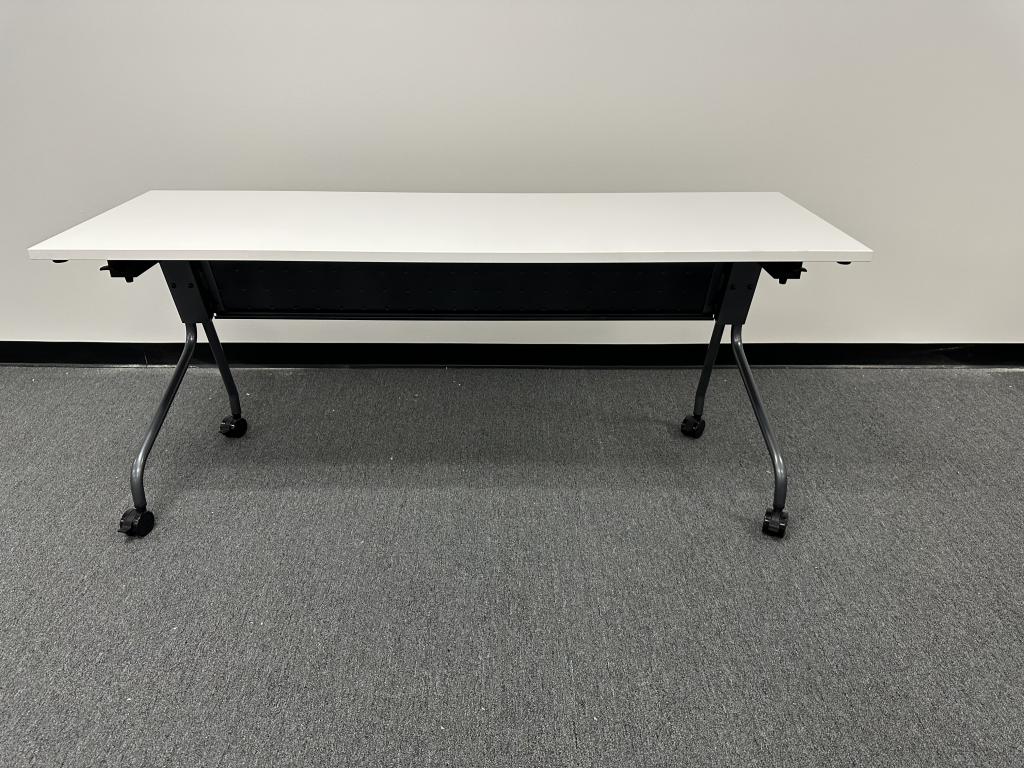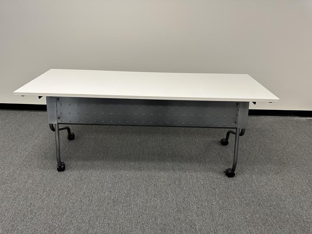 We have these 6’x2’ or 5’x2’ or 4’x2’ nesting table available brand new with metal modesty panel. Locking casters and legs.